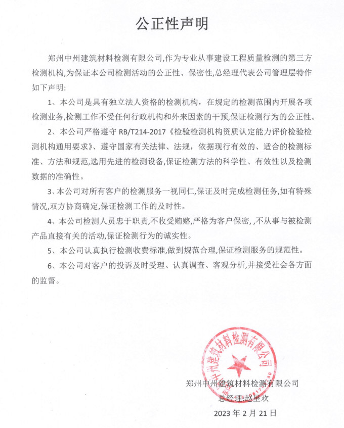 通過河南省質(zhì)量技術(shù)監(jiān)督局計量認證、河南省住房和城鄉(xiāng)建設(shè)廳批準,具有獨立法人資格的第三方檢測機構(gòu)。